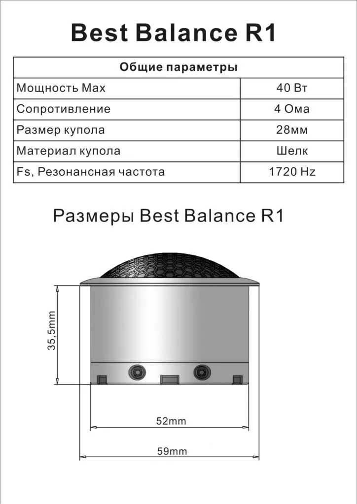 Завершают комплект великолепные твиттеры с 28мм шёлковым куполом — Best Balance R1.