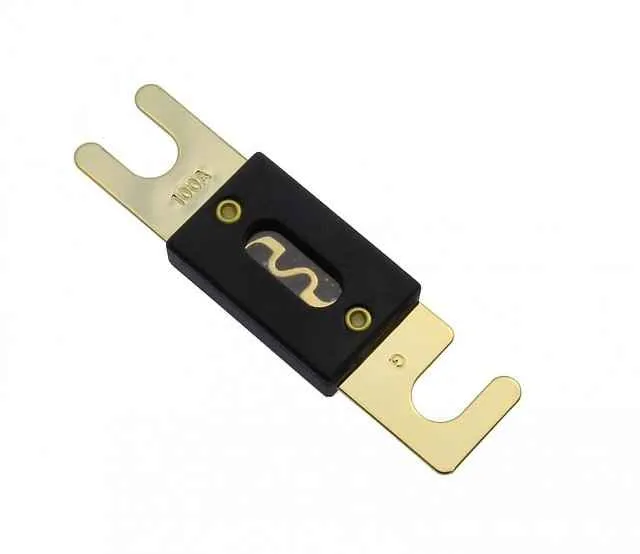Предохранители ANL представляют собой цельную металлическую пластину, которая плотно крепится в держателе болтами, поэтому это самый надежный вид предохранителя с наименьшим переходным сопротивлением.