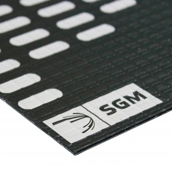 Алюмаст Бета (СГМ-вибро) - композиция лицевого защитного слоя из запечатанной фирменной символикой алюминиевой фольги толщиной 60 мкм с полимерной бутилкаучуковой самоклеющейся композицией (мастикой). C монтажной стороны материал защищен силиконизированной бумагой.