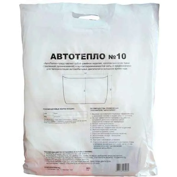 Автотепло (автоодеяло) – утеплитель для двигателя, состоящий из муллитокремнеземной ваты, кремнеземной ткани и стекловолокнистых ниток. Такой состав автоодеяла позволяет сохранять тепло двигателя на более длительный срок, улучшить шумоизоляцию моторного отсека и выдерживать температуру до 1200 градусов.
