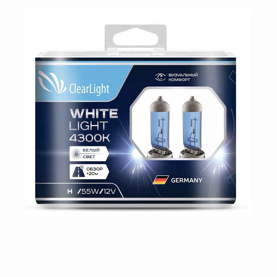 Галогеновые лампы Clearlight Лампа H3 12V-55W WhiteLight излучают яркий белый свет похожий на свет стандартных ксеноновых ламп.