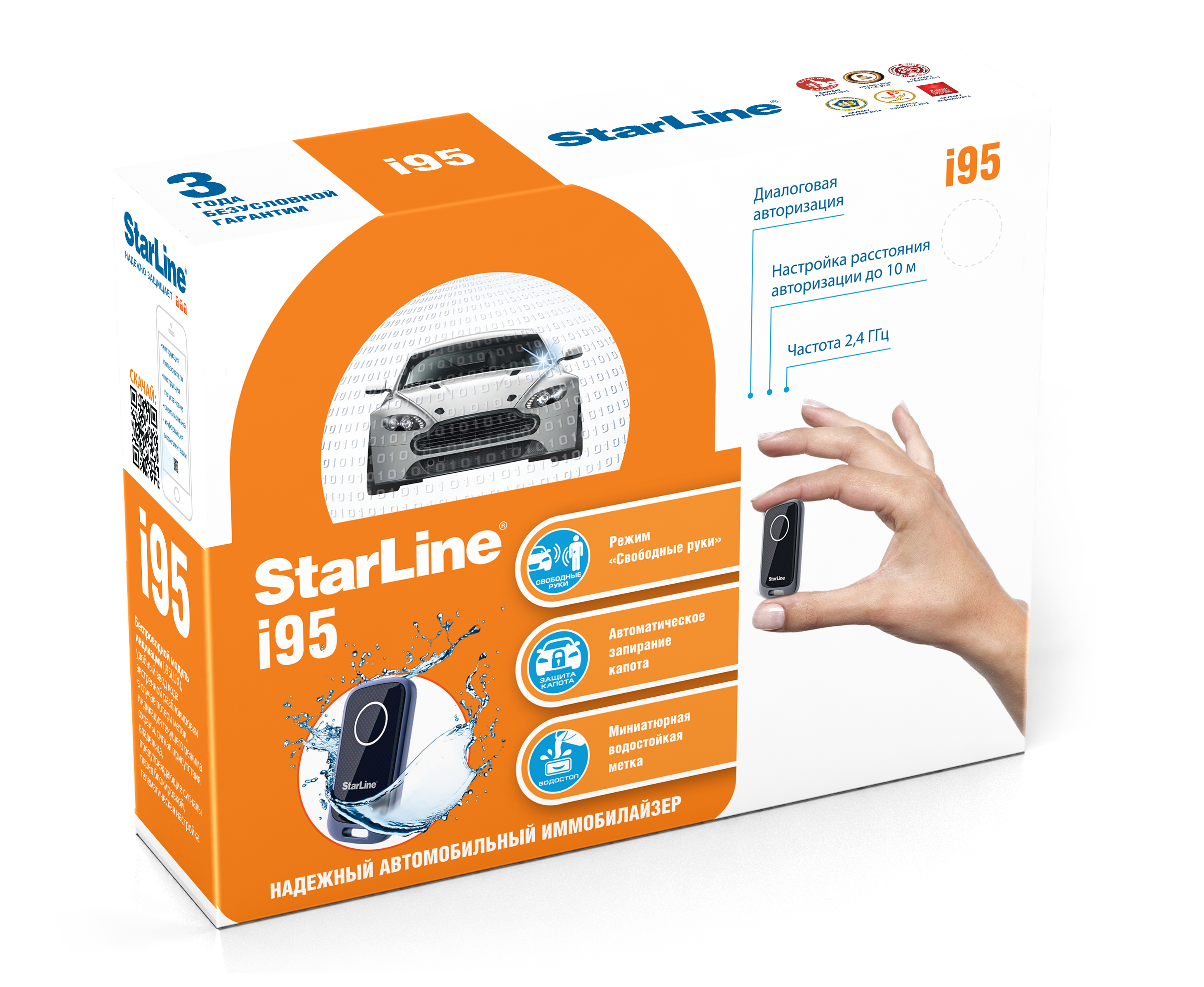 StarLine i95 Lux, StarLine i95, StarLine i95 Eco - надежные иммобилайзеры с диалоговой авторизацией на частоте 2,4 ГГц, беспроводной блокировкой двигателя, управлением эл. замком капота и режимом «свободные руки» (кроме StarLine i95 Eco).