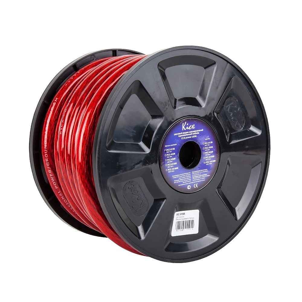 0GA силовой медно-алюминиевый одножильный кабель (38% / 62%), прозрачная красная/синяя изоляция, диаметр жилы 8,25мм, площадь 53,5 кв.мм, внешний диаметр 15,8 мм, бухта 15м