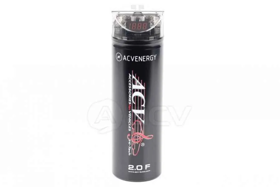 Электролитный конденсатор 2,0 Фарад с цифровым вольтметром и защитой от неправильной полярности и короткого замыкания. Конденсатор применяется в том случае, когда аудио системе необходимо воспроизвести мгновенный басовый импульс, в результате чего электрическая система автомобиля переходит в состояние резкого стресса.